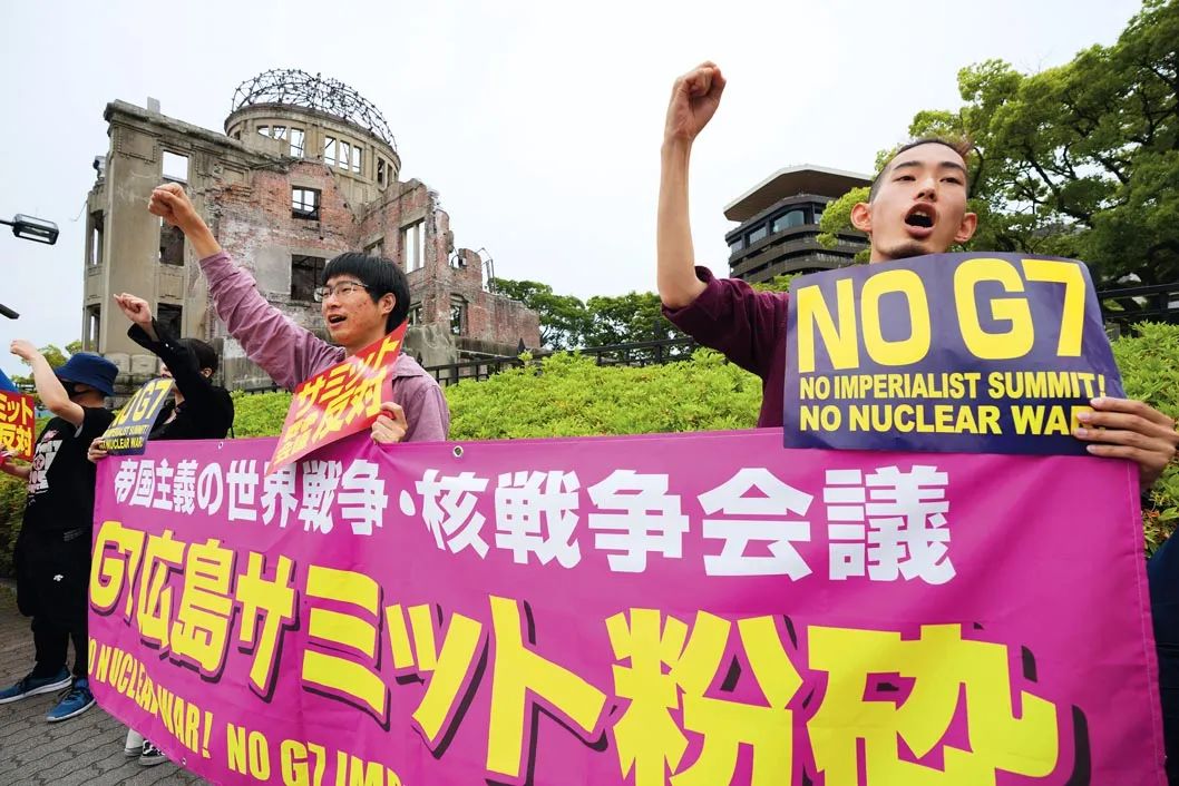 5月18日,民众在日本广岛和平纪念公园集会反对七国集团峰会