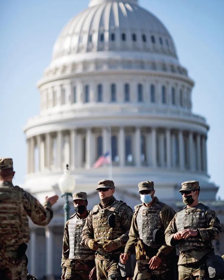 这是2021年1月14日在美国首都华盛顿特区的国会区域拍摄的美国国民警卫队士兵